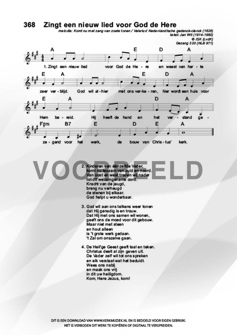 | Aanhef (eerste regel) | Zingt een nieuw lied voor God de Here |
