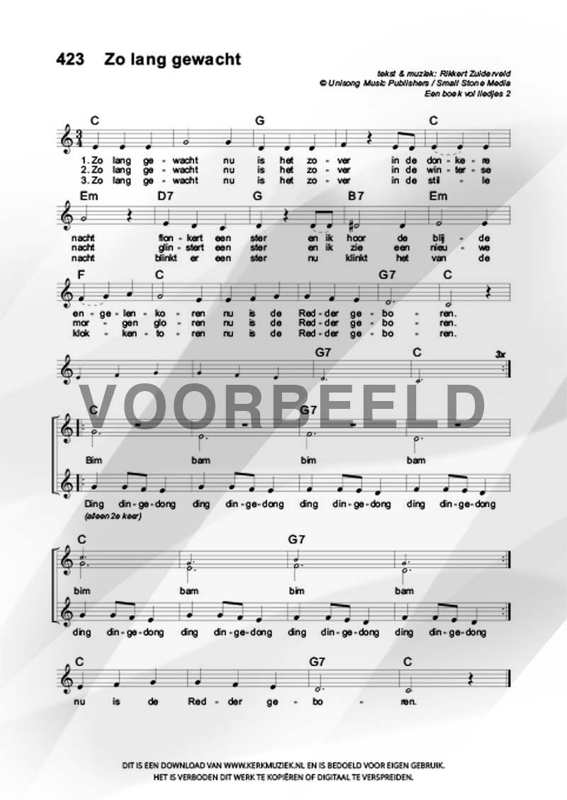 LET OP: U dient ZELF de liedbestanden te downloaden en af te drukken. Wij sturen u dus géén bladmuziek per post toe! U kunt na een geslaagde betaling direct zelf aan de slag.