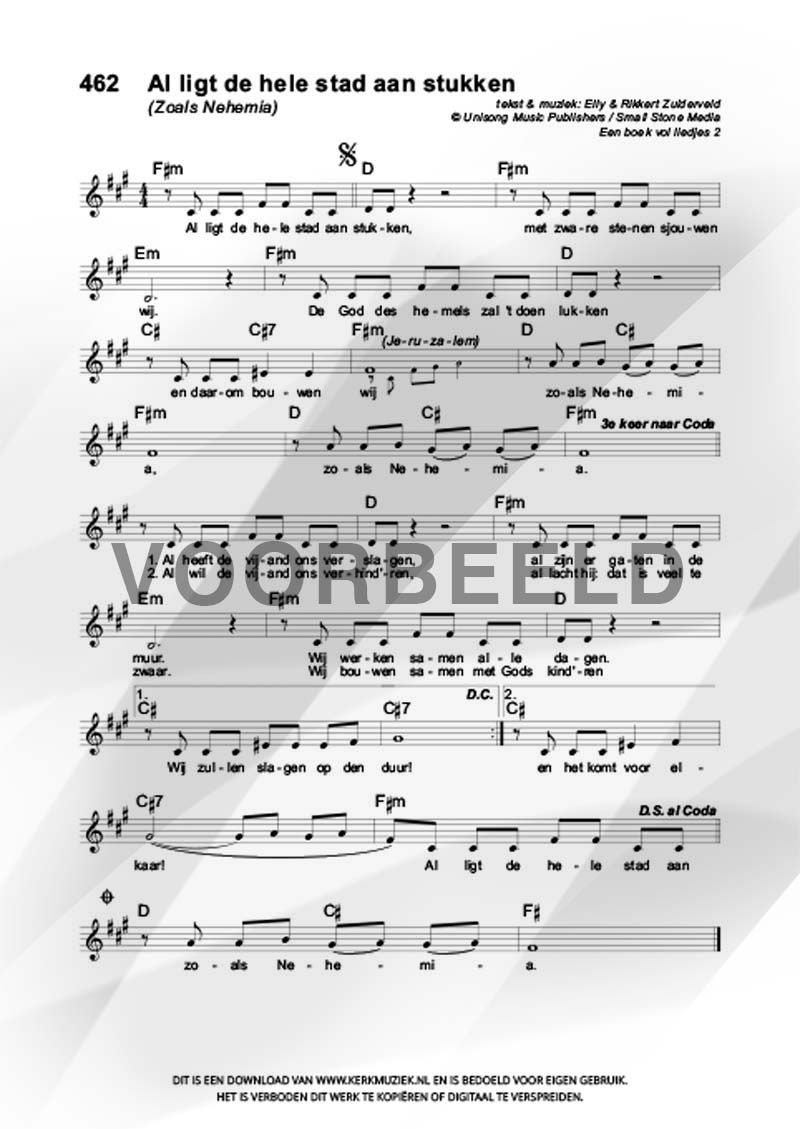 LET OP: U dient ZELF de liedbestanden te downloaden en af te drukken. Wij sturen u dus géén bladmuziek per post toe! U kunt na een geslaagde betaling direct zelf aan de slag.