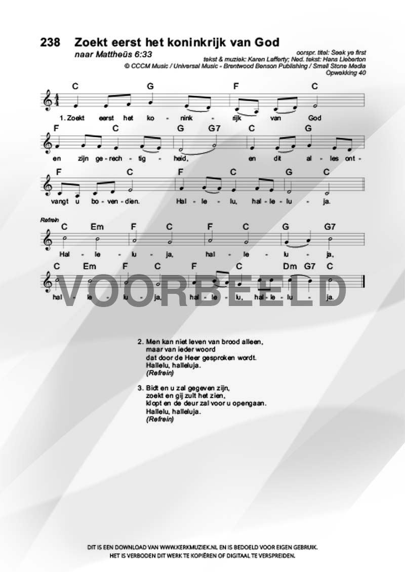 | Aanhef (eerste regel) | Zoekt eerst het koninkrijk van God |