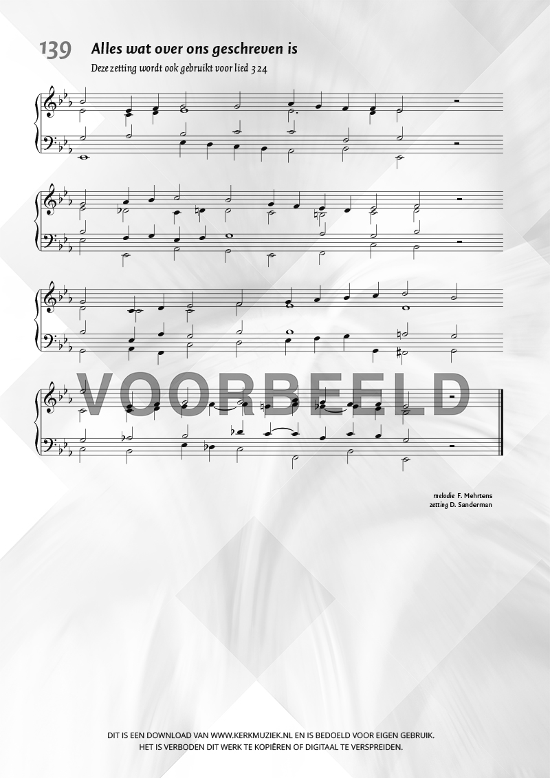 LET OP: U dient ZELF de liedbestanden te downloaden en af te drukken. Wij sturen u dus géén bladmuziek per post toe! U kunt na een geslaagde betaling direct zelf aan de slag.