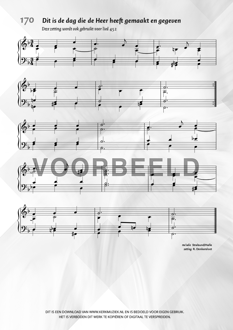 | Aanhef (eerste regel) | Dit is de dag die de Heer heeft gemaakt en gegeven |