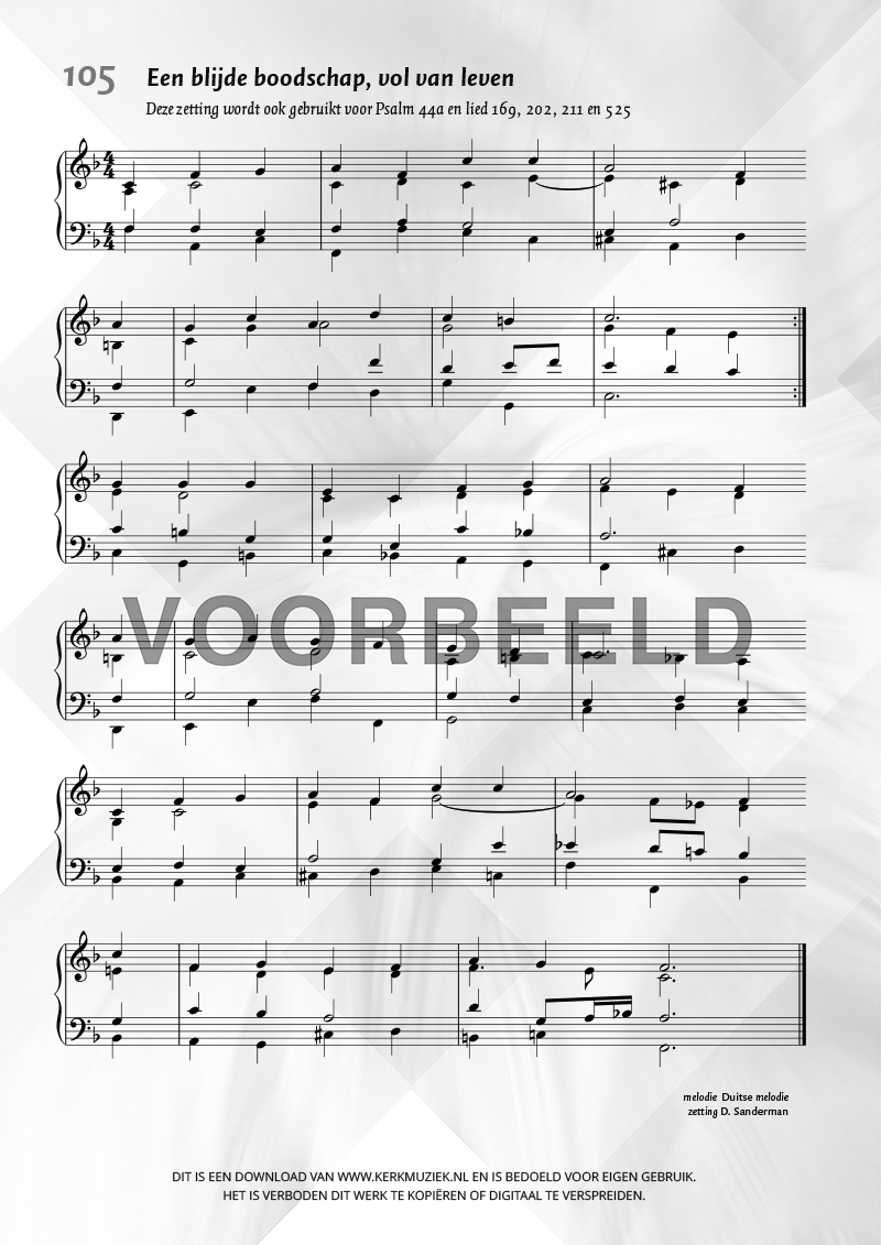 LET OP: U dient ZELF de liedbestanden te downloaden en af te drukken. Wij sturen u dus géén bladmuziek per post toe! U kunt na een geslaagde betaling direct zelf aan de slag.