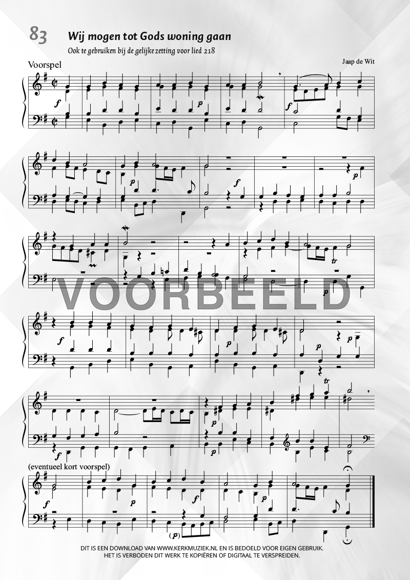 | Aanhef (eerste regel) | Wij mogen tot Gods woning gaan |