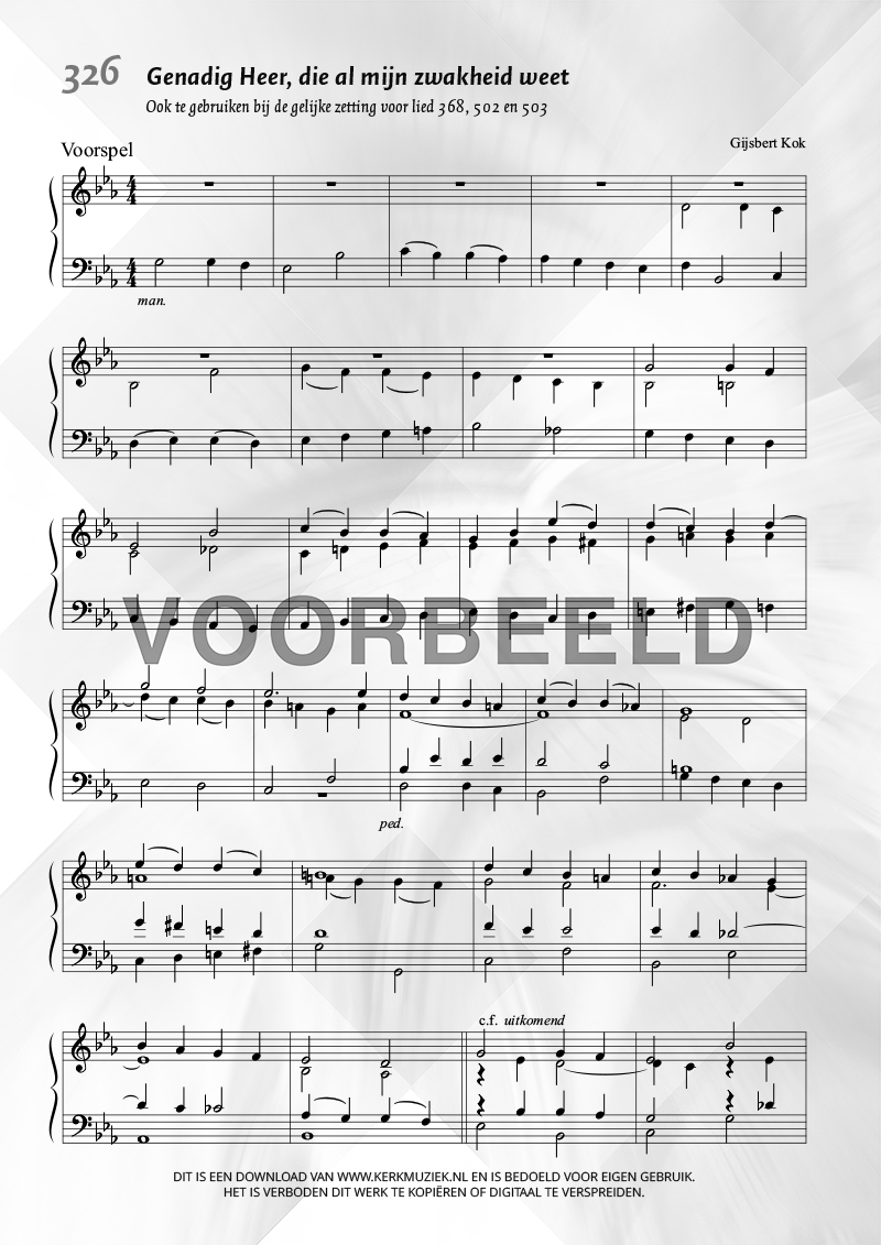 | Aanhef (eerste regel) | Genadig Heer, die al mijn zwakheid weet |