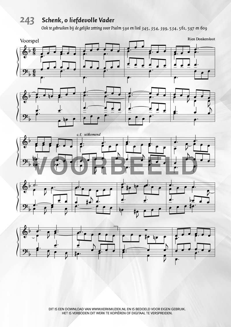 LET OP: U dient ZELF de liedbestanden te downloaden en af te drukken. Wij sturen u dus géén bladmuziek per post toe! U kunt na een geslaagde betaling direct zelf aan de slag.