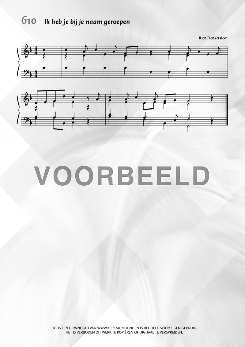 | Aanhef (eerste regel) | Ik heb je bij je naam geroepen |
