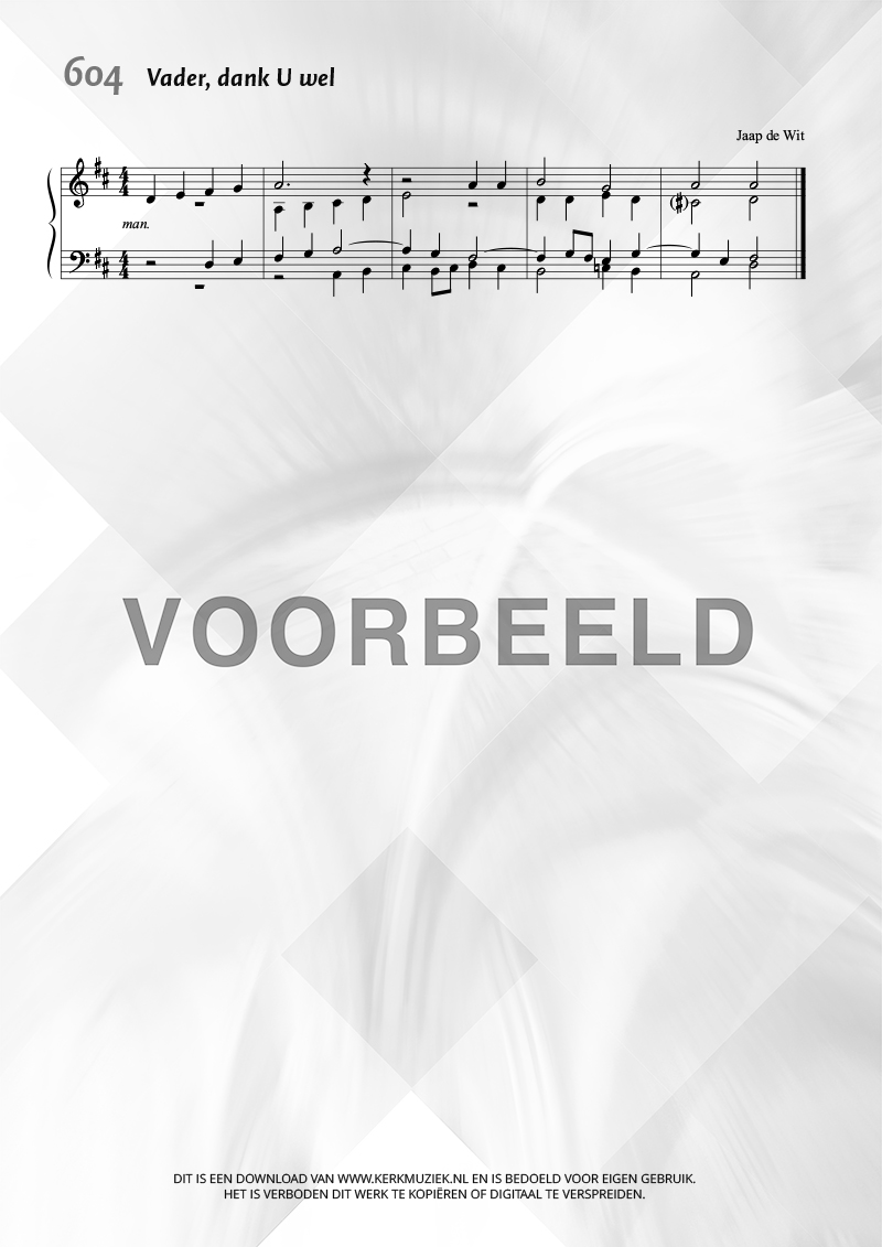 | Aanhef (eerste regel) | Vader, dank U wel |