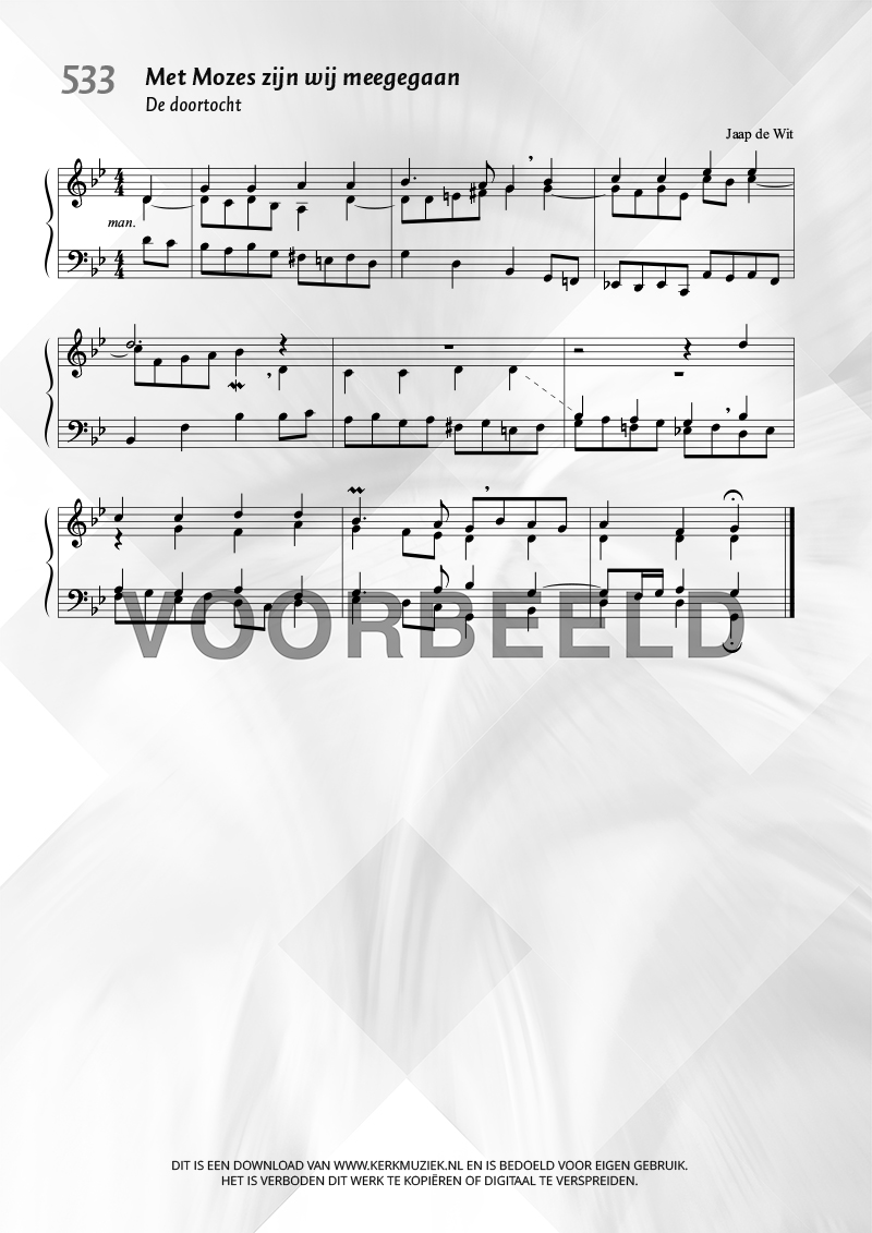| Aanhef (eerste regel) | Met Mozes zijn wij meegegaan |
