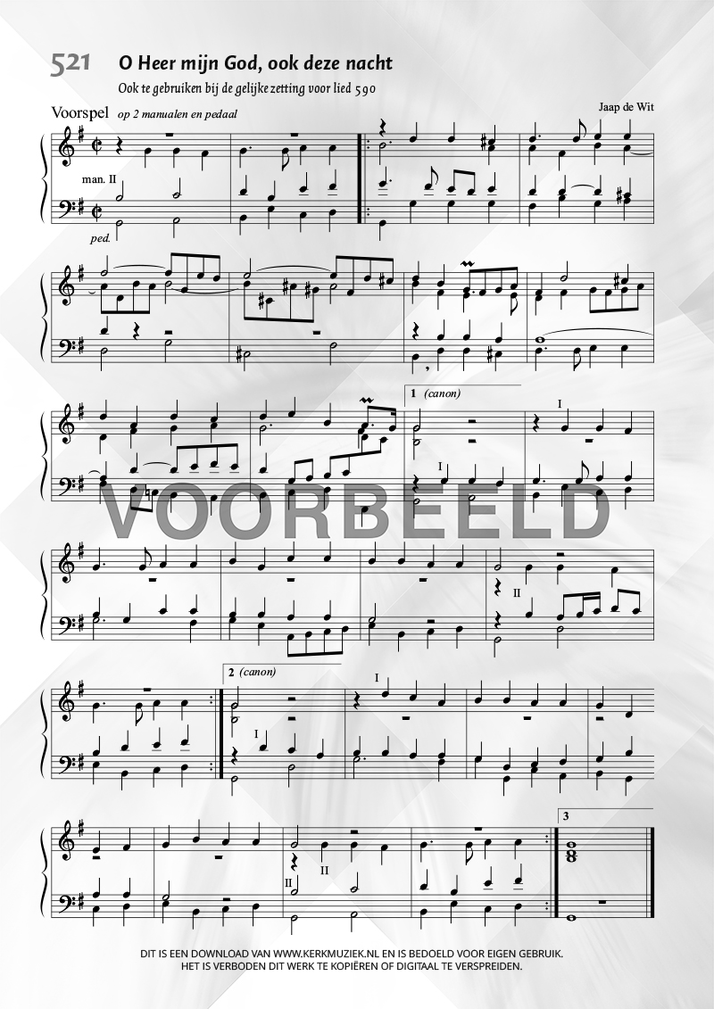| Aanhef (eerste regel) | O Heer mijn God, ook deze nacht |
