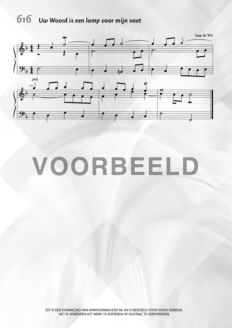 | Aanhef (eerste regel) | Uw Woord is een lamp voor mijn voet |