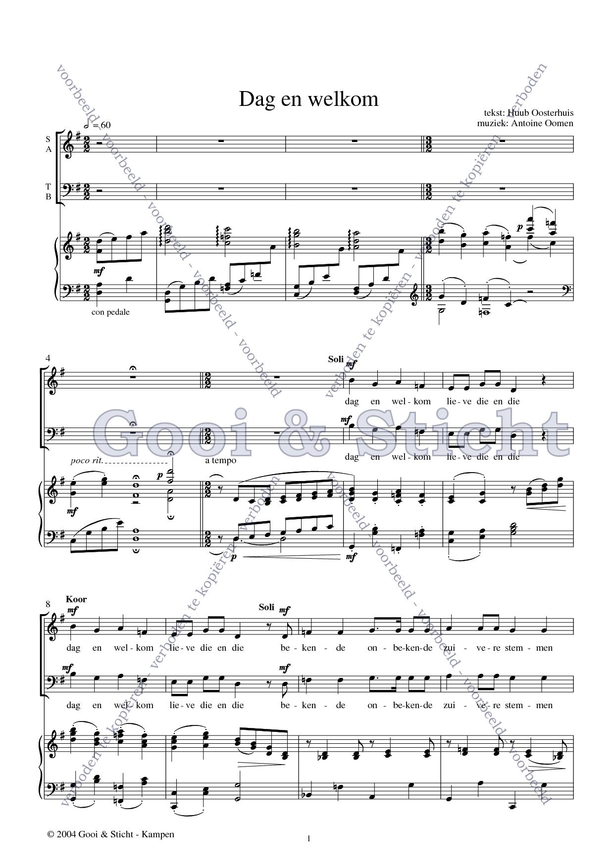 | Omschrijving | Partituur voor vierstemmig gemengd koor, volk en piano |