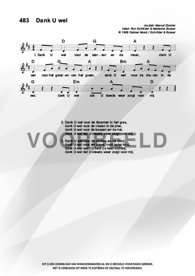 | Aanhef (eerste regel) | Dank U wel |