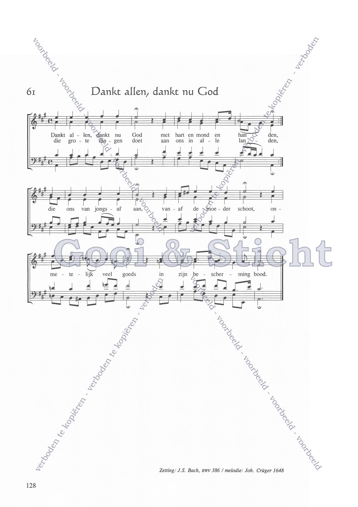 | Aanhef (eerste regel) | Dankt allen dankt nu god |
