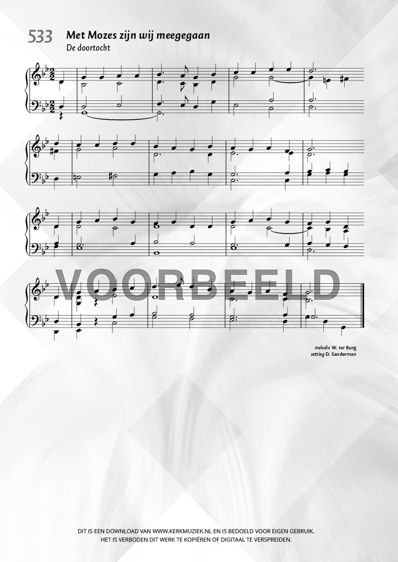 | Aanhef (eerste regel) | Met Mozes zijn wij meegegaan |