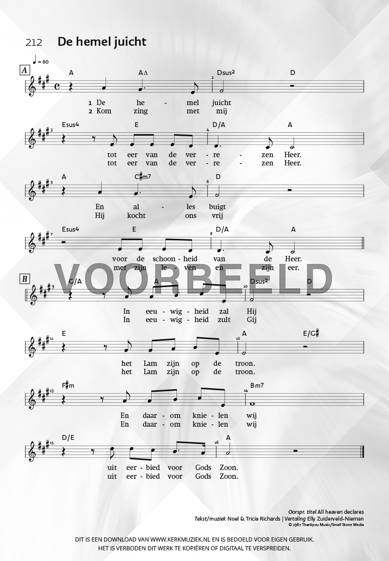 | Aanhef (eerste regel) | De hemel juicht |