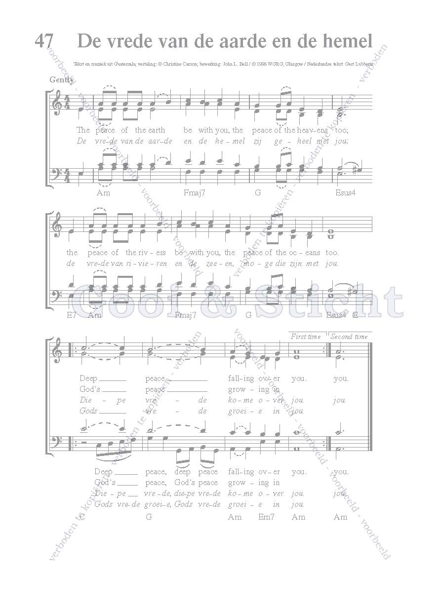 | Aanhef (eerste regel) | De vrede van de aarde en de hemel |