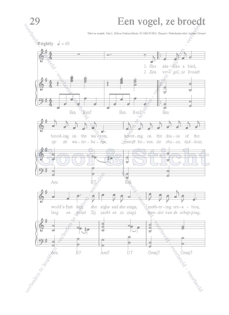 | Aanhef (eerste regel) | Een vogel, ze broedt |