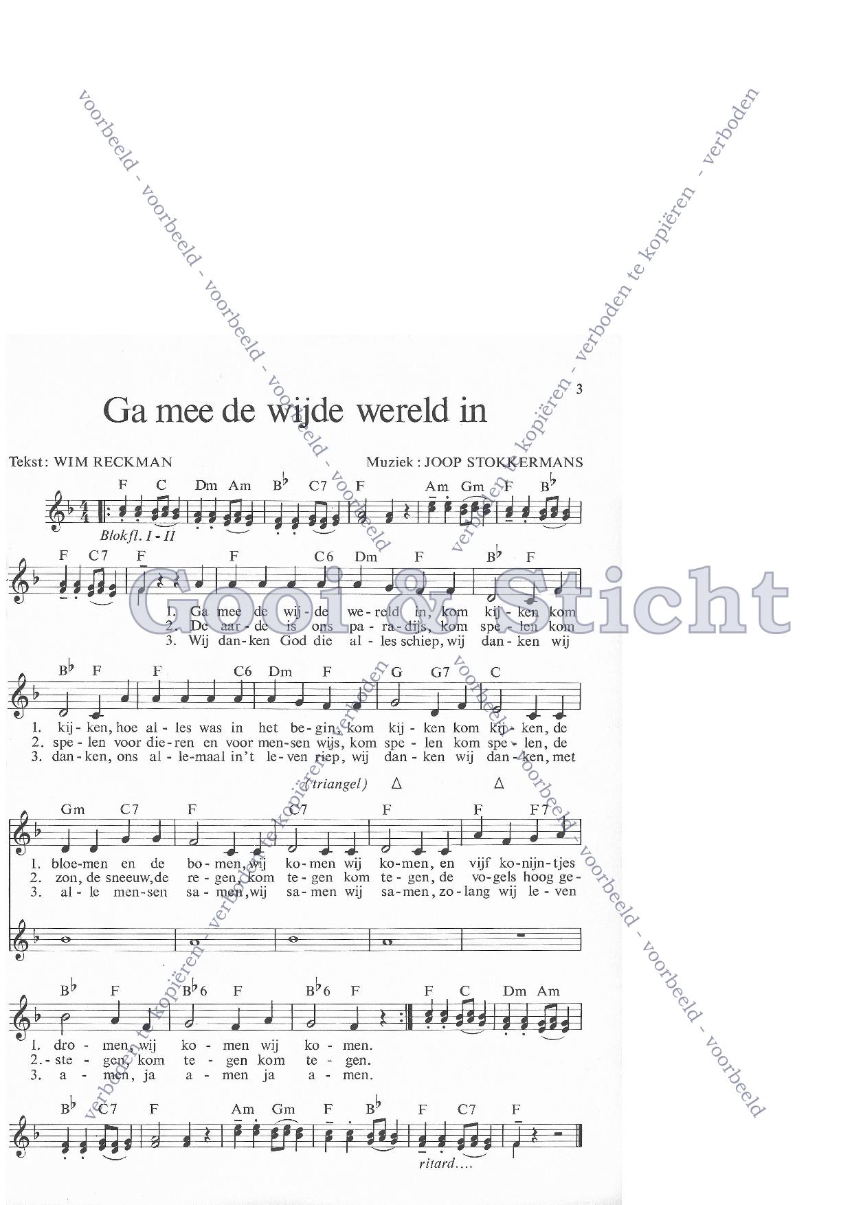 | Aanhef (eerste regel) | Ga mee de wijde wereld in |