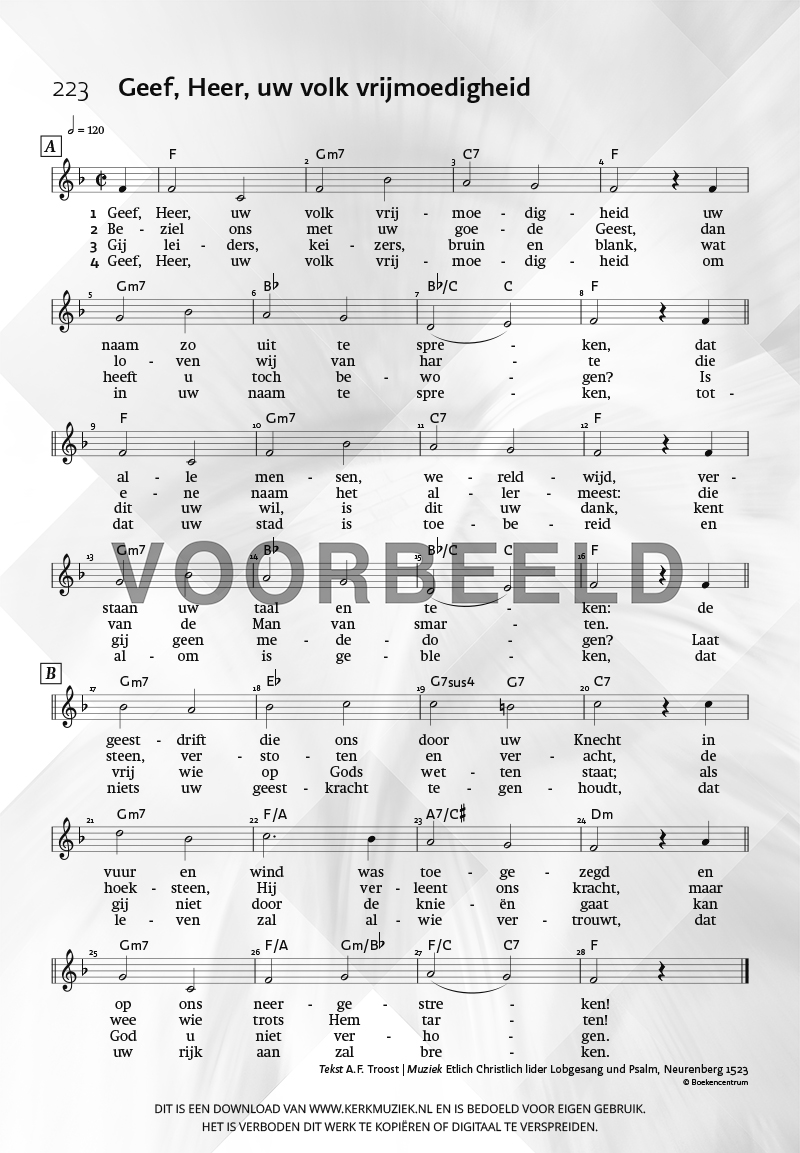| Aanhef (eerste regel) | Geef, Heer, uw volk vrijmoedigheid |