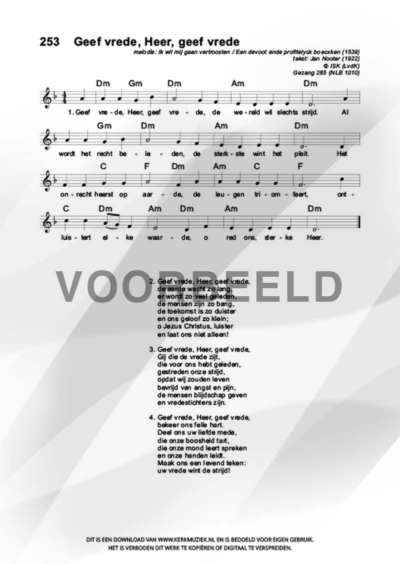 | Aanhef (eerste regel) | Geef vrede, Heer, geef vrede |