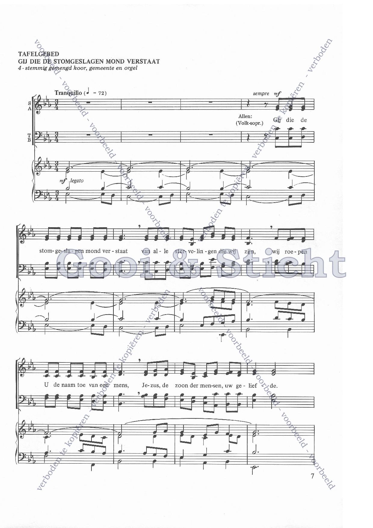 | Refrein | Gij die de stomgeslagen mond verstaat |