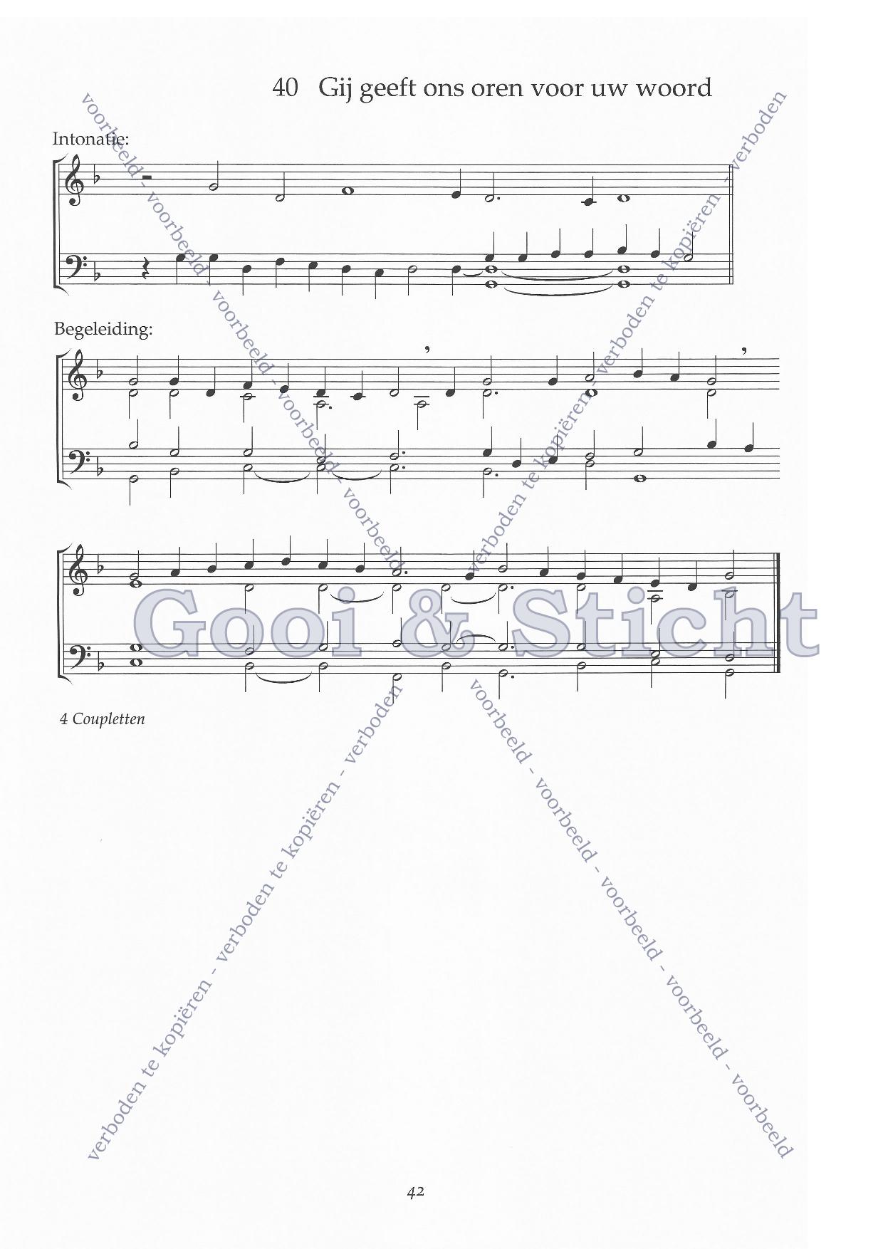 | Aanhef (eerste regel) | Gij geeft ons oren voor uw woord |