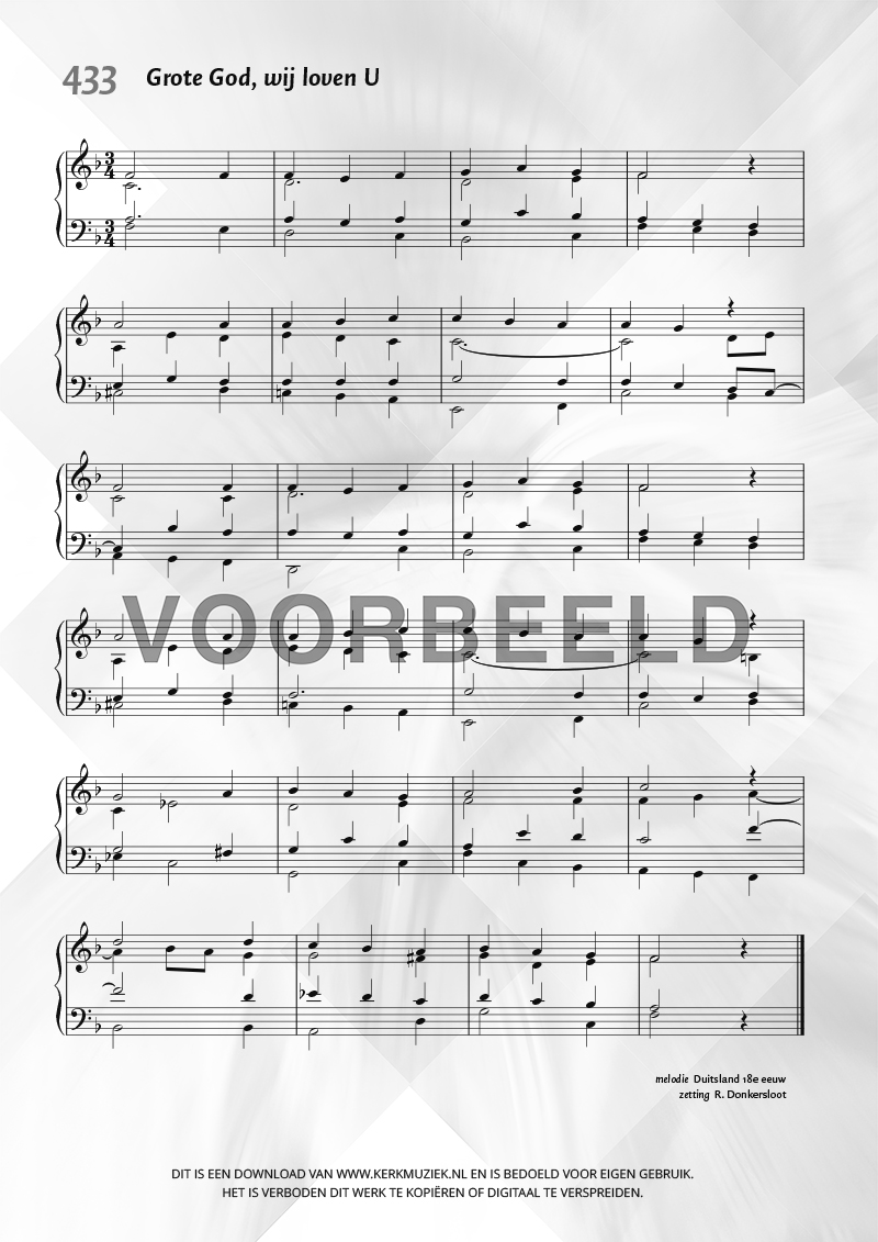 | Aanhef (eerste regel) | Grote God, wij loven U |