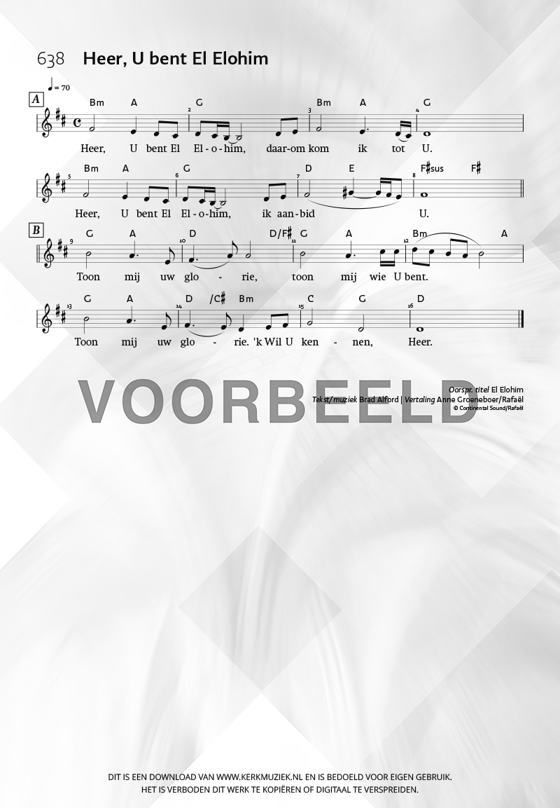 | Aanhef (eerste regel) | Heer, U bent El Elohim |