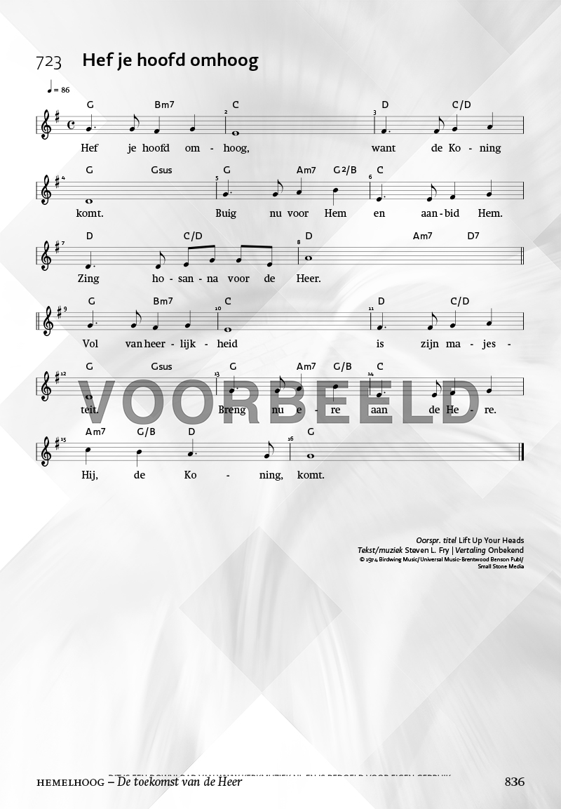 | Aanhef (eerste regel) | Hef je hoofd omhoog |