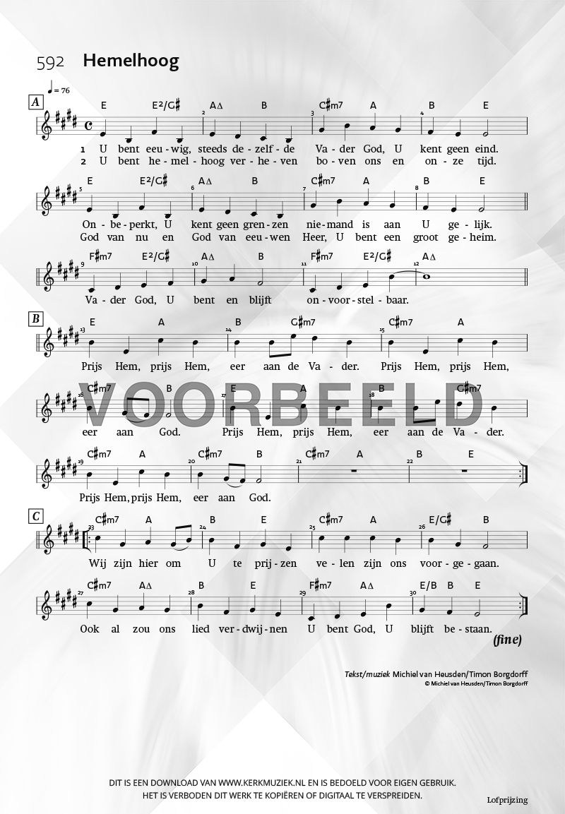 | Aanhef (eerste regel) | U bent eeuwig, steeds dezelfde |