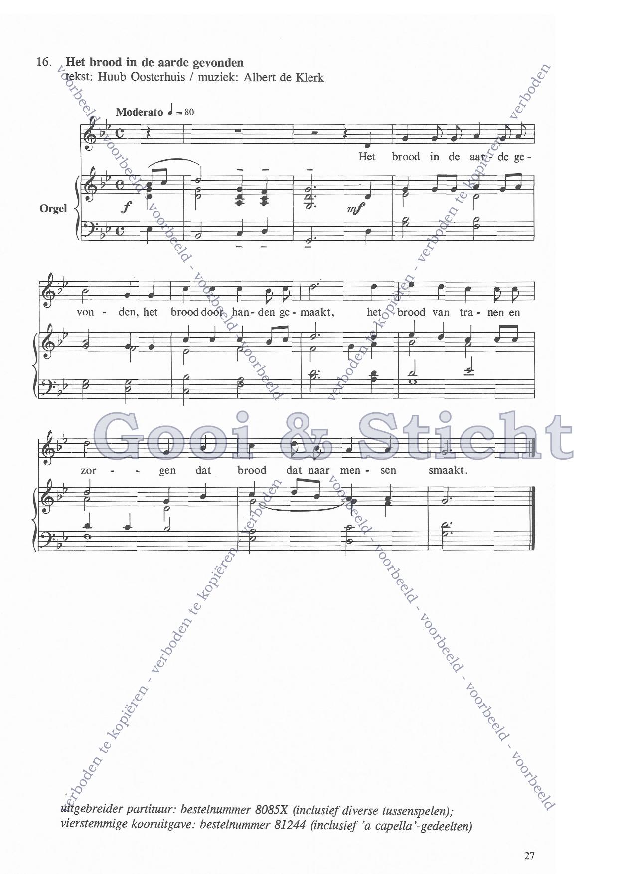 | Omschrijving | Partituur voor éénstemmig koor, gemeente en orgel |