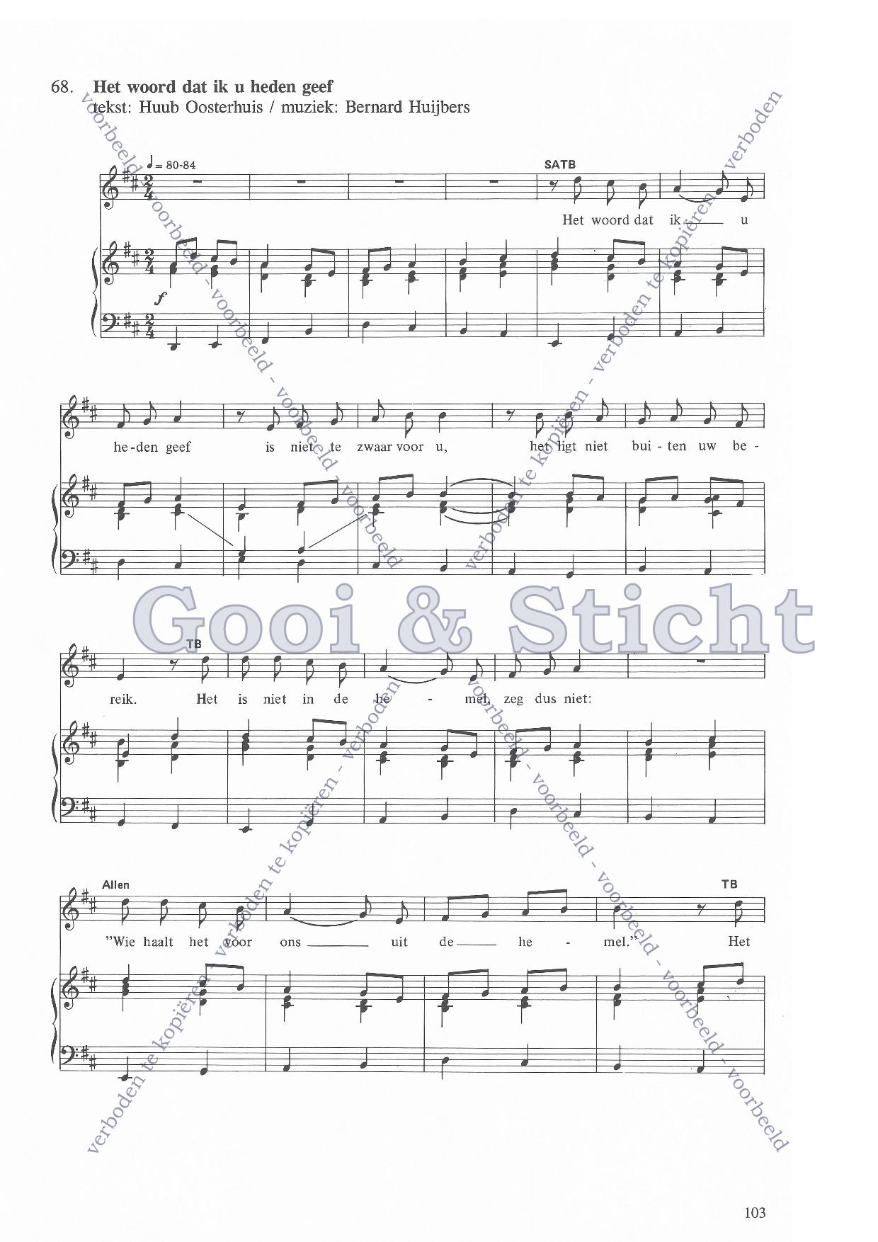 | Aanhef (eerste regel) | Het woord dat ik u heden geef |