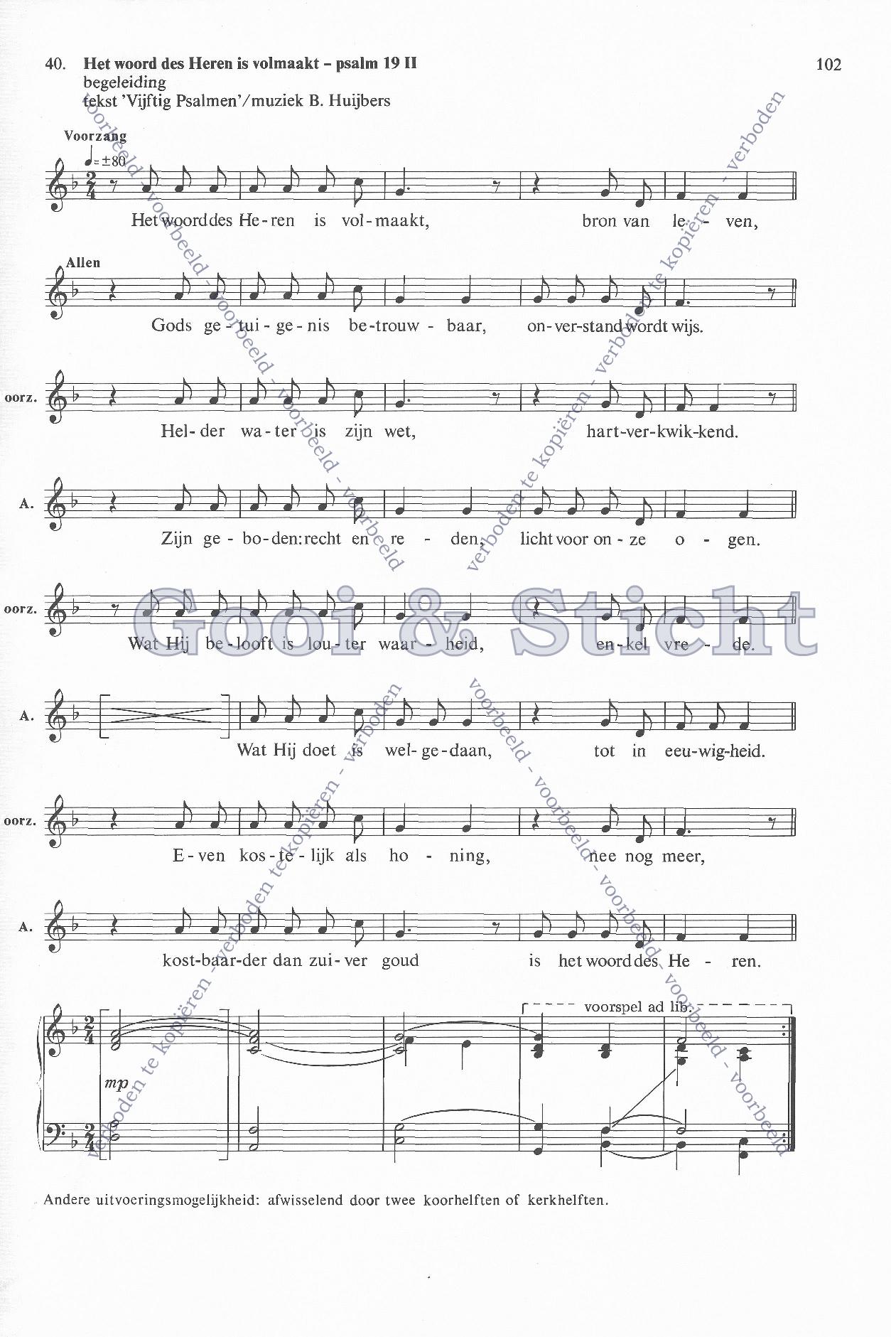 | Aanhef (eerste regel) | Het woord des heren is volmaakt |
