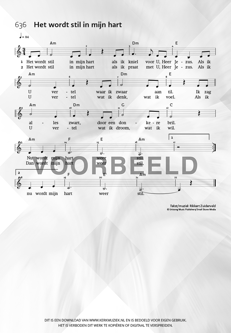 | Aanhef (eerste regel) | Het wordt stil in mijn hart |