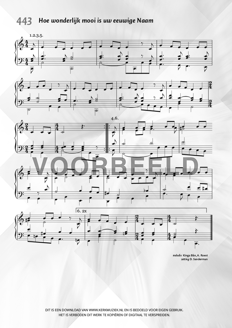 | Aanhef (eerste regel) | Hoe wonderlijk mooi is uw eeuwige Naam |