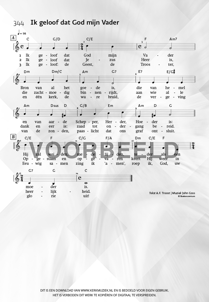 | Aanhef (eerste regel) | Ik geloof dat God mijn Vader |