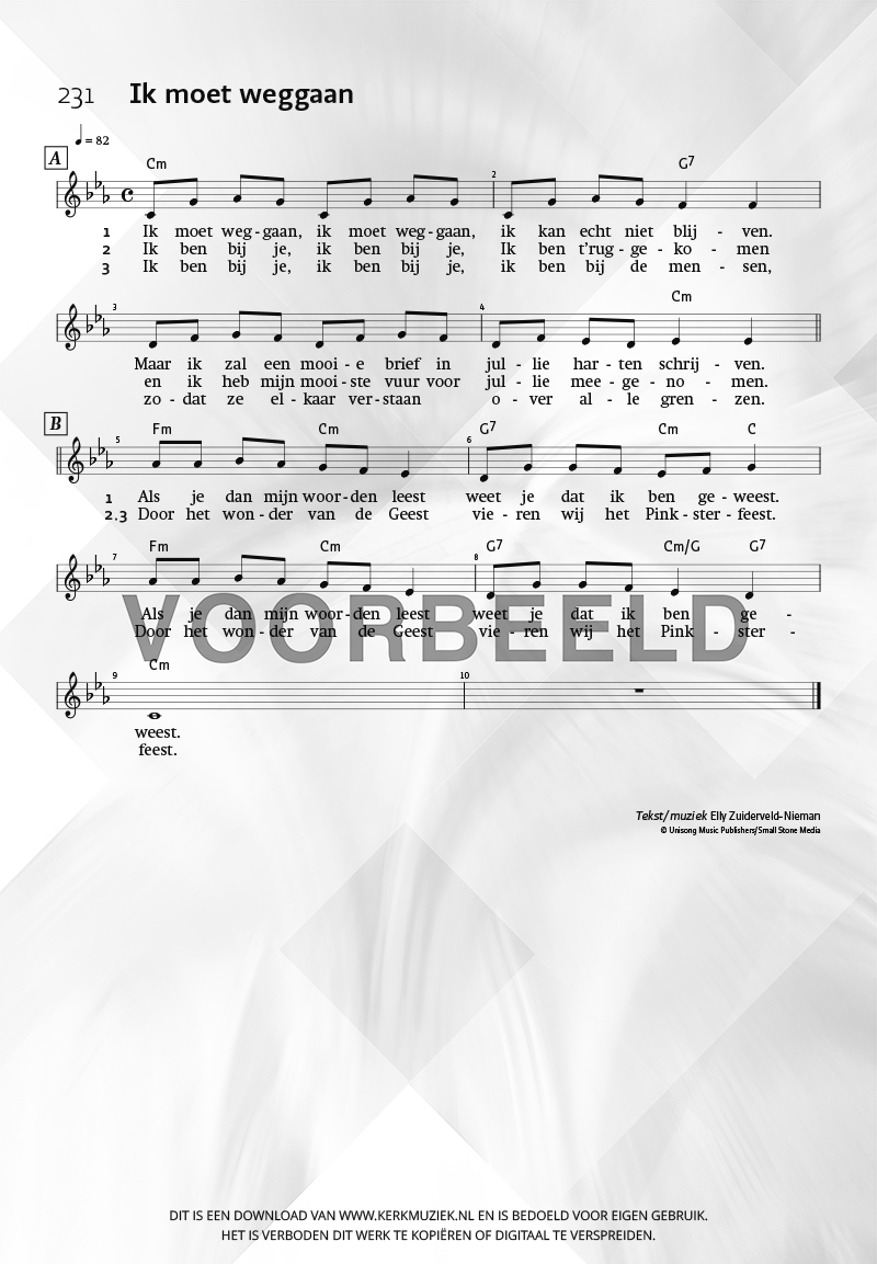 | Aanhef (eerste regel) | Ik moet weggaan |