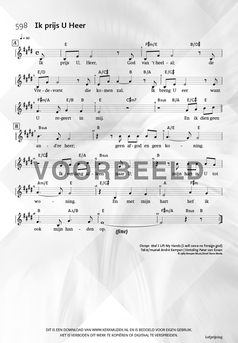 | Aanhef (eerste regel) | Ik prijs U Heer |
