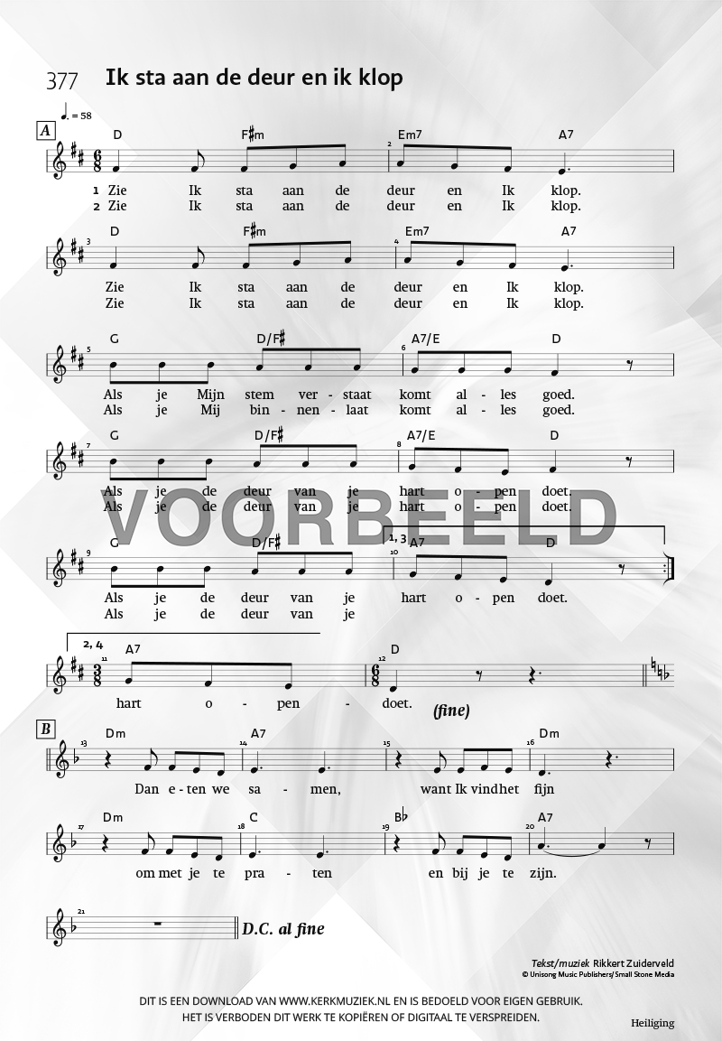 | Aanhef (eerste regel) | Ik sta aan de deur en ik klop |