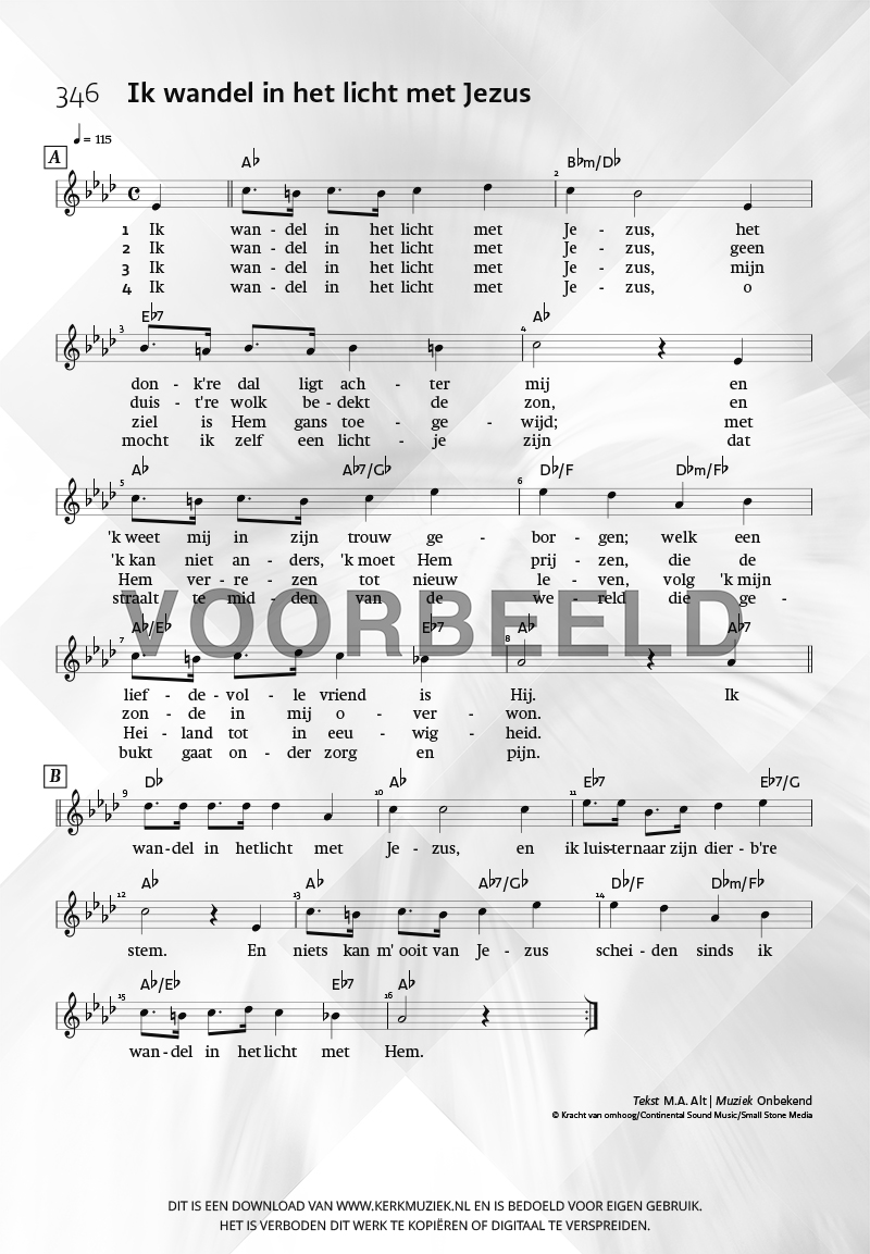 | Aanhef (eerste regel) | Ik wandel in het licht met Jezus |