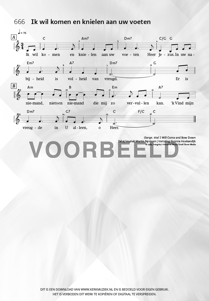 | Aanhef (eerste regel) | Ik wil komen en knielen aan uw voeten |
