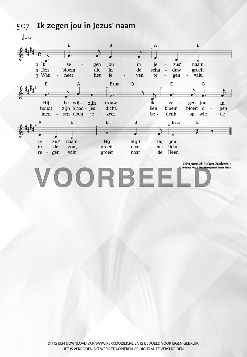| Aanhef (eerste regel) | Ik zegen jou in Jezus’ naam |