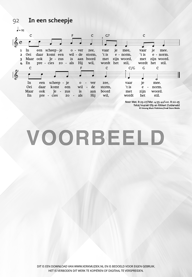 LET OP: U dient ZELF de liedbestanden te downloaden en af te drukken. Wij sturen u dus géén bladmuziek per post toe! U kunt na een geslaagde betaling direct zelf aan de slag.
