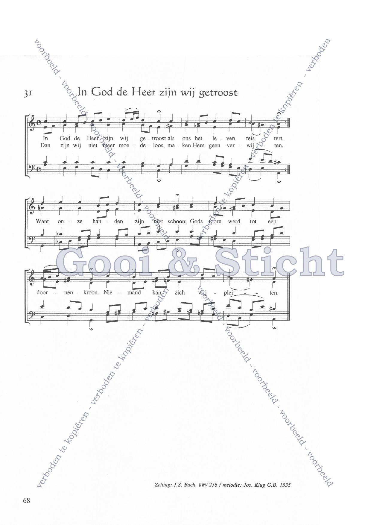 | Aanhef (eerste regel) | In god de heer zijn wij getroost |