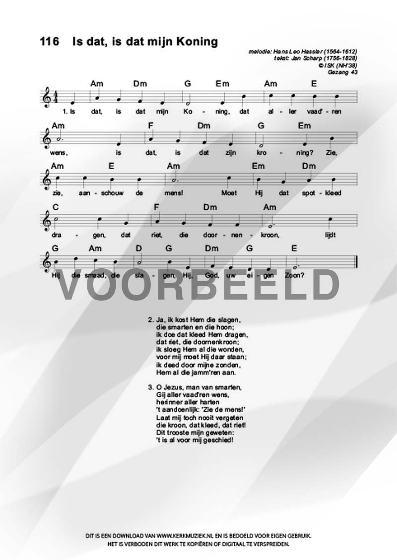 | Aanhef (eerste regel) | Is dat, is dat mijn Koning |