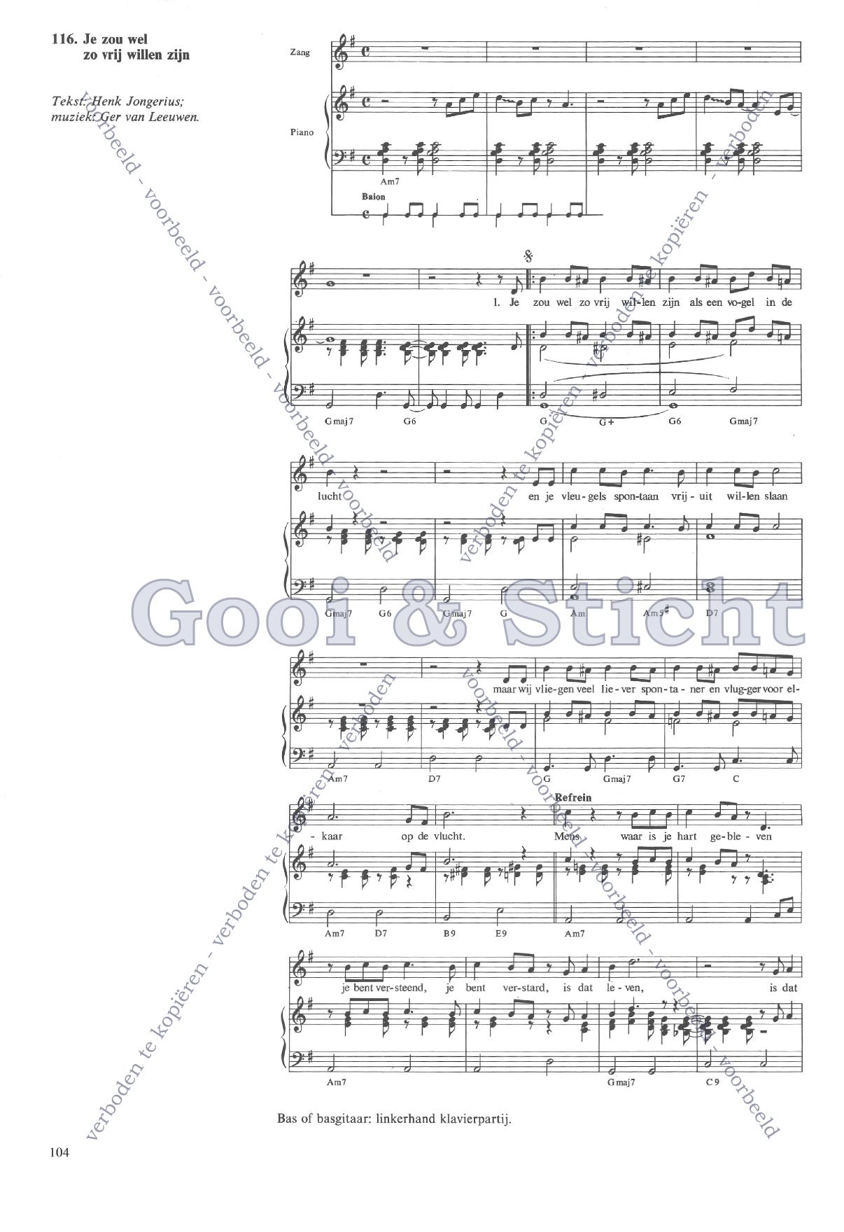 | Aanhef (eerste regel) | Je zou wel zo vrij willen zijn |