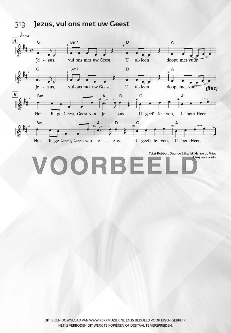 | Aanhef (eerste regel) | Jezus, vul ons met uw Geest |