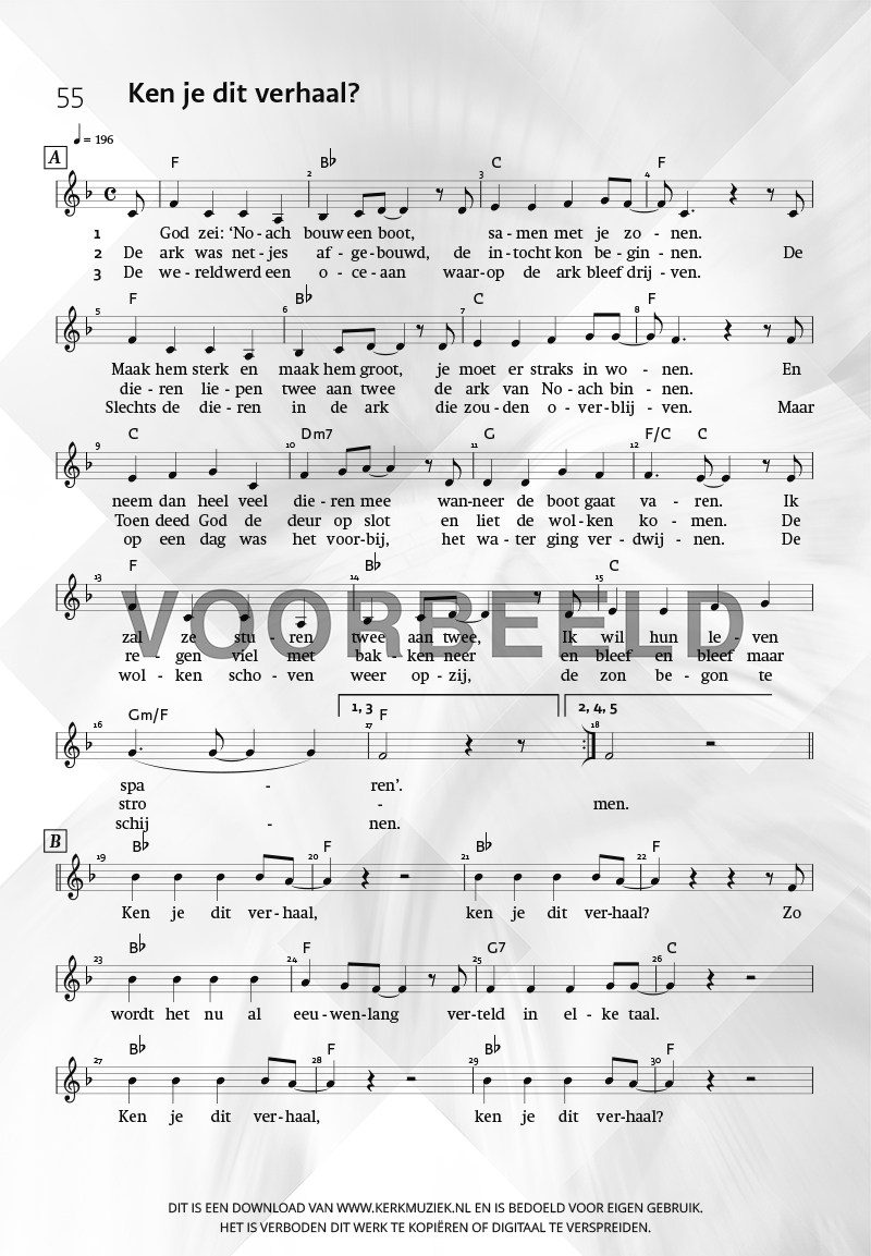 | Aanhef (eerste regel) | God zei: Noach bouw een boot |