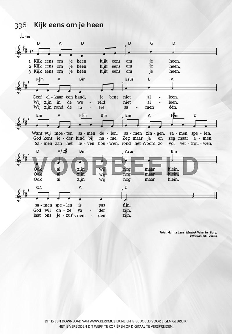 | Aanhef (eerste regel) | Kijk eens om je heen |